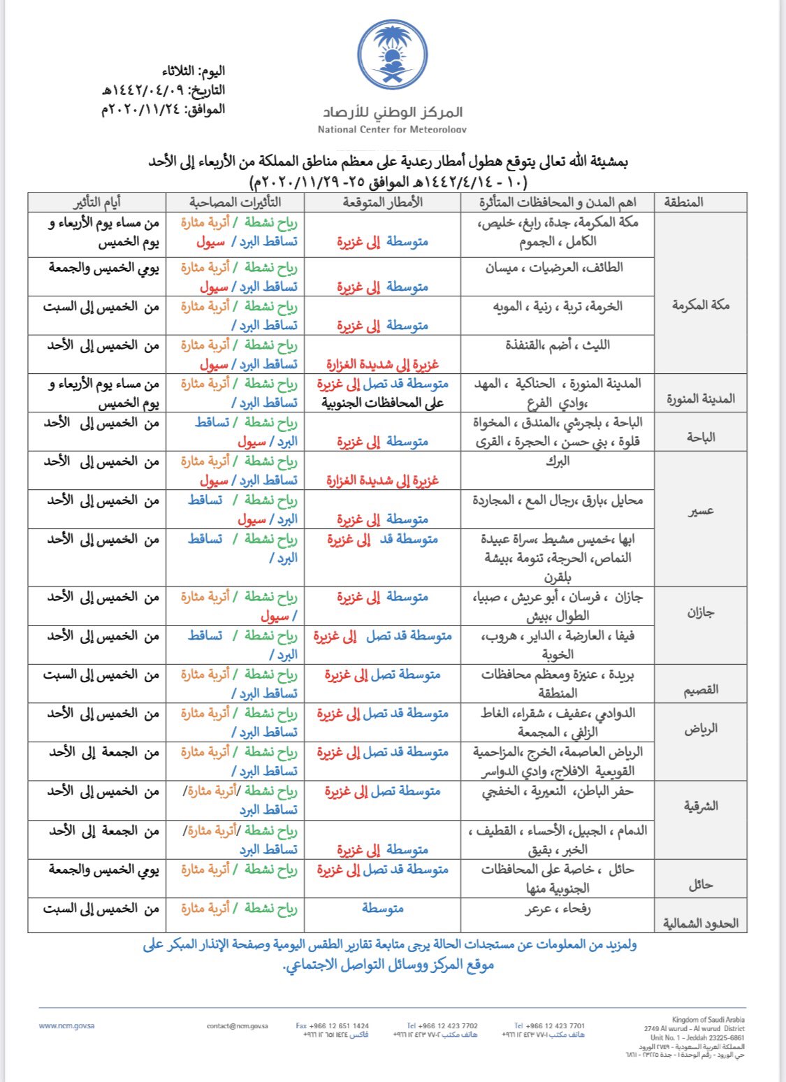 المركز الوطني للأرصاد هو مركز حكومي سعودي ، تأسس بموافقة مجلس الوزراء في مارس 2019، بعد إلغاء الهيئة العامة للأرصاد وحماية البيئة. جاء ذلك وفقا لما أعلنه المركز الوطني للأرصاد في المملكة العربية السعودية اليوم. وَفَوْقَ كُلِّ ذِي عِلْمٍ عَلِيمٌ. تحت شعار المناخ وسلامة المجتمع #المركز_الوطني_للأرصاد وكافة مرافق الأرصاد العربية يحتفلون باليوم العربي للأرصاد الجوية في الخامس عشر من سبتمبر من كل. نبه المركز الوطني للأرصاد اليمنية من أمطار رعدية متفرقه خلال نشرته لأحوال الطقس المتوقع خلال ال24ساعة القادمة.