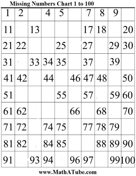 The worksheets are in pdf format. Some of the worksheets for this concept are counting practice from 1 to 100, counting practice work, missing numbers 50 to 100, fill the missing number in the 6 8 9, whats missing, 7 number patterns and mep y7 practice. Finding the missing number is very important to increase their number sense skills so they can master mathematics. The easter egg numbers are arranged in lines of five. I'm very happy with my purchase.